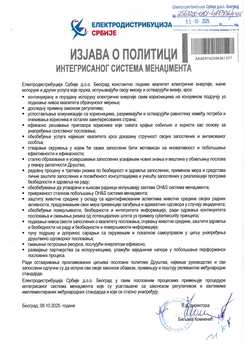 Електродистрибуција Србије je успоставила, сертификовала и одржава системе менаџмента у складу са захтевима међународних стандарда: